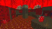 На двадцать четвёртой карте мы будем окружены краснотой буквально со всех сторон: красное небо над головой, окружающие нас скалы и пещеры из красного адского камня, стены в том числе из красного металла в комнате с синим ключом, раскалённая докрасна лава у нас под ногами и большое количество какодемонов с пулемётчиками (68% всех монстров на карте – это именно они) среди наших противников! Capellan писал, что изначально хотел вообще ограничиться только ими, да, видимо, пожалел глаза игроков, у которых из-за такого обилия неразбавленной красноты на экранах могла и кровь из глаз хлынуть...