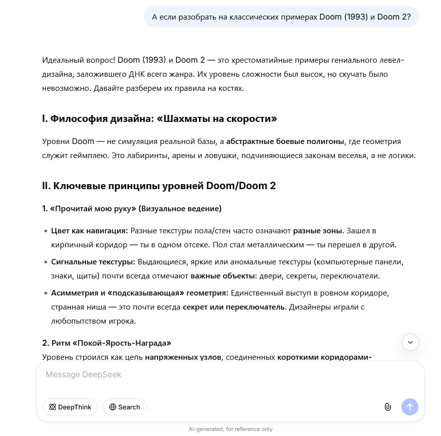 Вывод: Уровни классического Doom — это не архитектура, а интерактивная музыка. Они состоят из повторяющихся, но вариативных мотивов (комната-ловушка, арена, коридор), которые складываются в симфонию насилия. Ритм задавался не таймером, а действиями игрока: взял ключ — получил волну врагов. Это создавало прямой, мгновенный фидбэк и чувство агентства. Скучать было невозможно, потому что игра вела с тобой постоянный, жестокий, но честный диалог. Каждая дверь была вопросом: «Готов ли ты к тому, что за мной?». И игрок, затаив дыхание, всегда отвечал «да».